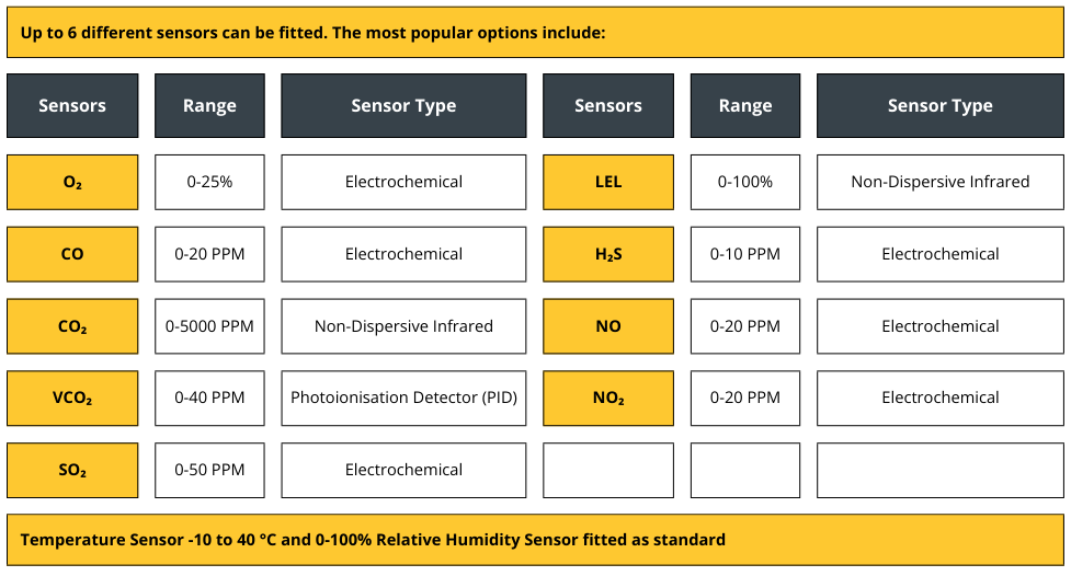 - Up to 6 different sensors can be fitted to suit a client’s individual requirements.