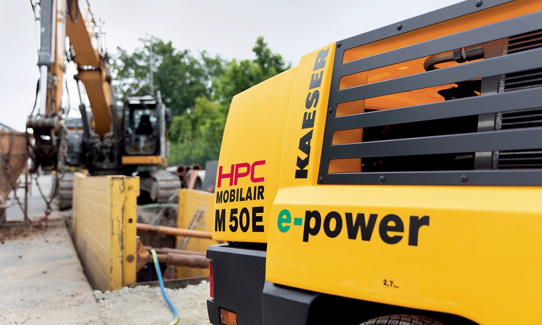 HPC KAESER electric portable compressors truly come into their own wherever an electrical power connection is available. Their whisper-quiet electric drive makes them the perfect choice for use in low emission and noise protection zones. The emissions-free drive also means they are ideal for operating in tunnels, excavation pits and buildings.