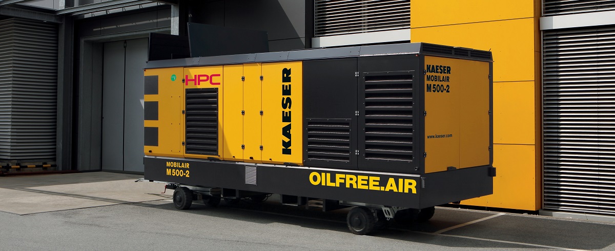 100% OIL FREE AIR FOR SALE or FOR HIRE - The HPC KAESER MOBILAIR M500-2 combines all the advantages of a two-stage, oil-free compression rotary screw compressor with those of a portable unit: maximum compressed air delivery volumes and quality, coupled with unrivalled flexibility.