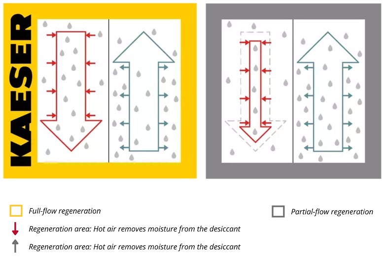 - Higher regeneration potential than dryers with partial-flow regeneration
